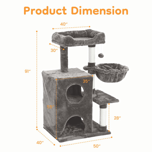Heynemo Multi-Level Cat Tree Tower for Large Cats with Scratching Posts, Condos, Perch, Hammocks & Toys ¨C Modern Indoor Cat Jungle Gym for 2¨C3 Cats, 19.7" x 15.7" x 35.8", Grey