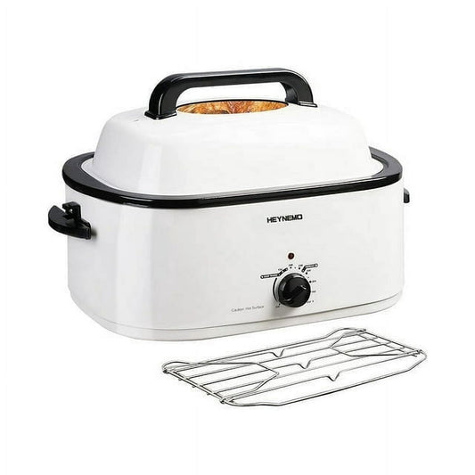 Superjoe 24 QT Electric Stainless Steel Turkey Roaster Oven, Self-Basting Lid Removable Insert Pot , White