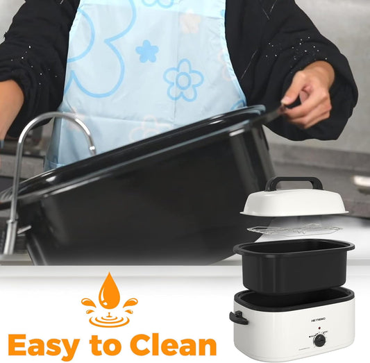CozyHom 24 QT Electric Stainless Steel Turkey Roaster Oven, Self-Basting Lid Removable Insert Pot Perfect for Gathering and Dining, White