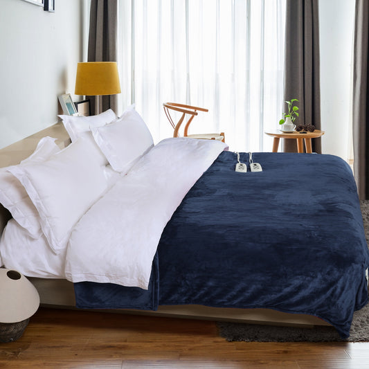 Electric Blanket King Size with Dual Controllers,10 Heating Levels& 12 hours Auto-off,Overheat Protection,Blue