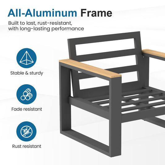 Superjoe Aluminum Outdoor Furniture Set 4 Pcs Patio Conversation Sofa Set with Coffee Table,Gray