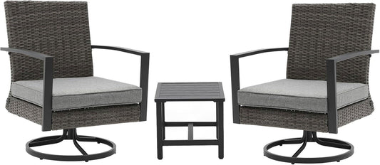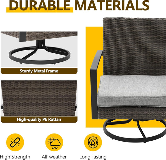 Superjoe Patio Swivel Dining Chairs with 360-Degree Rotating, All Weather Rattan Chairs with Water-Resistant Cushions & Metal Frame, Table, Modern Outdoor Rocking Chair for Porch, Bistro, Balcony, Grey