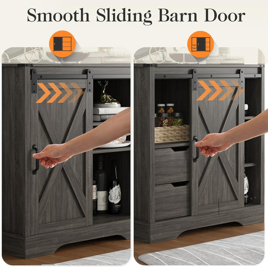 CozyHom Kitchen Pantry Storage Cabinet With Drawers and Shelves, Wine Bar Buffet Cabinet Liquor Bar Sideboard, Gray