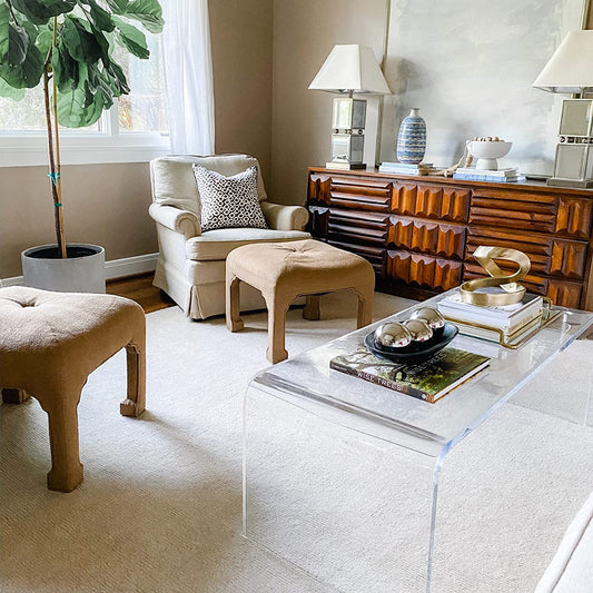 Maycasa Acrylic Coffee Table with PVC Cover Protector, 32" L x 16" W x 16'' H x 3/5'' Thick Modern Waterfall Coffee Table for Living Room, Clear Rectangle Lucite Table with Round Edges