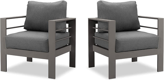 3 Pcs Aluminium Outdoor Armchair, Modern Metal Patio Sofa Balcony Conversation Sets