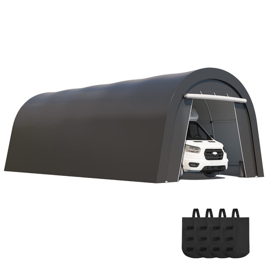 Heynemo 12' x 25' Portable Metal Carport with 4 Bags, Weatherproof PE Cover, Outdoor Car Canopy Tent with 2 Roll-up Doors, Outside Dome Storage Shelter Shed for Cars, Truck, Garden Tools