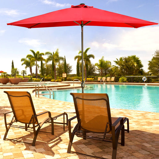 Heynemo 10x 6.5ft Rectangular Patio Umbrella, Outdoor Table Market Umbrella with Crank, 6 Steel Ribs, Polyester Canopy, Aluminum Pole,Red