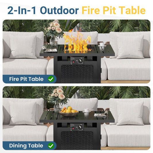 Heynemo 43" Outdoor Propane Fire Pit Table with Waterproof Cover, 2-in-1 50,000 BTU Gas Fire Table with Lid & Decorative Lava Rocks