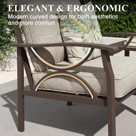 Heynemo 5-Seater Outdoor Patio Furniture Set, 4 Piece Patio Conversation Set with Coffee Table, Metal Furniture Set for Porch Backyard Garden, Coffee
