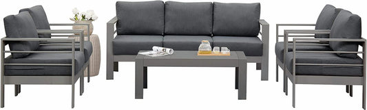 Heynemo 6 Pcs Patio Furniture Set Aluminum Conversation Set Outdoor Sofa with Coffee Table, White