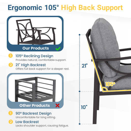 Heynemo 5-Seater Outdoor Patio Furniture Set, 4 Piece Patio Conversation Set with Coffee Table, Metal Furniture Set for Porch Backyard Garden, Grey