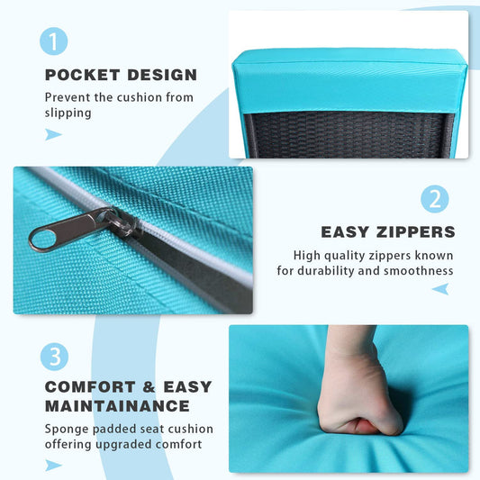 Sunvivi Outdoor Chaise Lounge, Patio Lounge Chair Wicker Adjustable Reclining Chair for Pool with Removable Cushion, Blue