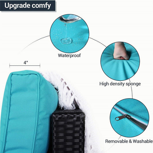 7 Piece Outdoor Rattan All Weather Sectional Sofa with Turquoise Cushions