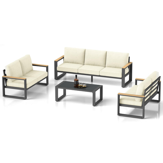 Heynemo Aluminum Patio Furniture, 5-Seats Metal Outdoor Furniture Set with Coffee Table, Modern Patio Sofa Sets Outdoor Conversation Set for Pool Garden Porch Backyard, Beige