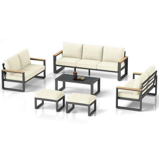 Heynemo Aluminum Patio Furniture Set, 7-Seats Metal Outdoor Furniture Set with Coffee Table, Modern Patio Sofa Sets Outdoor Conversation Set for Garden Pool Porch Backyard, Beige