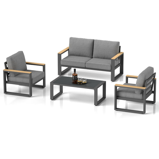 Aluminum Outdoor Patio Furniture Set with Height-adjustable Footrest for Lawn Porches Patio, 4-Seats All-weather Patio Sofa Sets with Coffee Table, Modern Outdoor Patio Conversation set, Grey