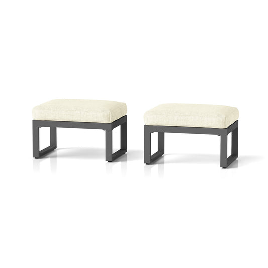 Heynemo 2 Pieces Aluminum Outdoor Patio Ottoman Set, Outdoor Foot Stools with Thick Cushion, Small Seat Furniture for Porch Balcony Backyard, Beige