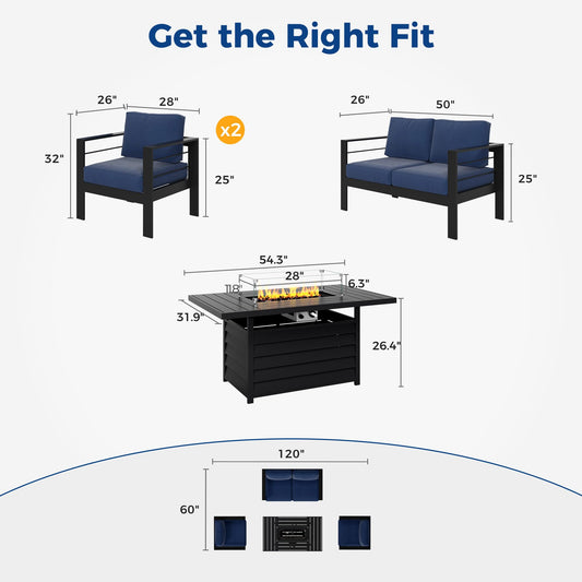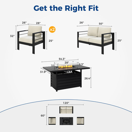 Heynemo Aluminum Outdoor Patio Furniture Set, 4 Pieces Modern Patio Sectional Sofa Conversation Set, Outdoor Seating Set with Fire Pit Table for Deck Garden Backyard, Beige
