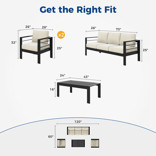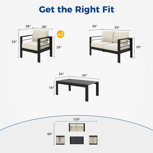 Heynemo Aluminum Outdoor Patio Furniture Set, 5 Seats Modern Patio Sectional Sofa Conversation Set, Outdoor Seating Set with Coffee Table for Deck Garden Backyard, Beige