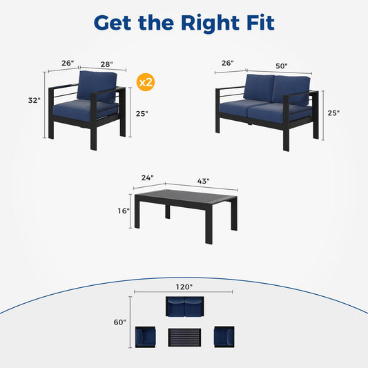 Heynemo Aluminum Outdoor Patio Furniture Set, 5 Pieces Modern Patio Sectional Sofa Conversation Set, Outdoor Seating Set with Coffee Table for Deck Garden Backyard, Blue