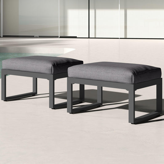 Heynemo 2 Pieces Aluminum Outdoor Patio Ottoman Set, Outdoor Foot Stools with Thick Cushion, Small Seat Furniture for Porch Balcony Backyard, Grey