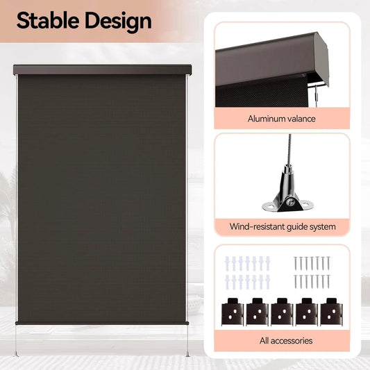 CozyHom Outdoor Roller Shades for Patio with Valance, New Material Outdoor Blinds with 95% UV Blockout, Cordless Exterior Roller Shades with Crank Handle for Balcony Patio Porch