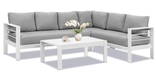 Heynemo 4 Pieces Outdoor Aluminum Furniture Set, Patio Sectional Sofa Couch - Conversation Set with Coffee Table and Sofa, White