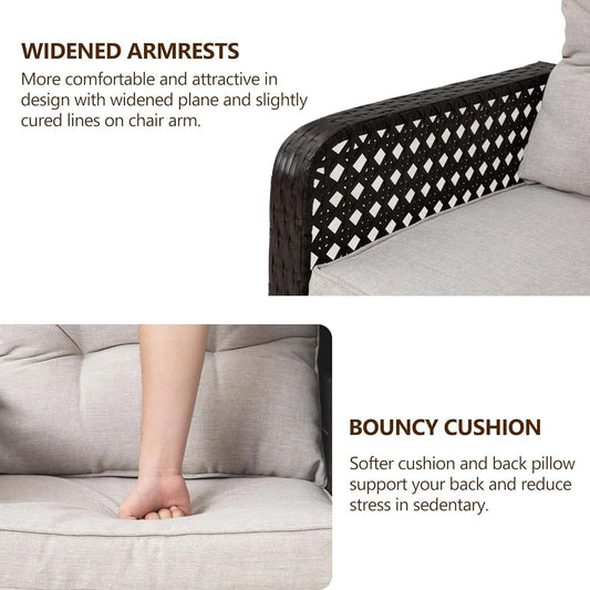 Heynemo Superjoe 4 Pieces Patio Furniture Set, Outdoor Rattan Chair Wicker Conversation Sets with Cushions and Glass Coffee Table, for Porch Balcony Garden Backyard Deck,Beige