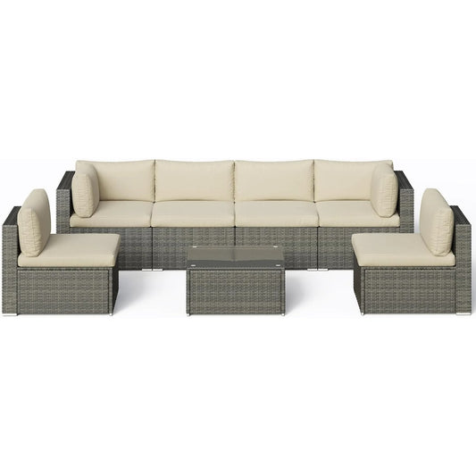 Heynemo Superjoe 7-Piece Modular Patio Furniture Set, Wicker Outdoor Sectional Sofa with Cushions and Coffee Table,Conversation Sets for Porch Balcony Backyard Patio,Grey