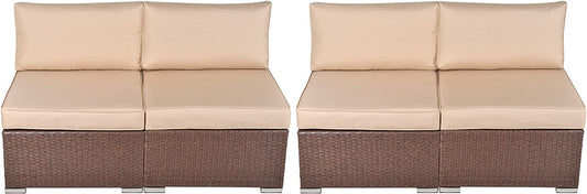 4 Piece Patio Wicker Loveseat, Outdoor Sectional Armless Sofa Additional Furniture Set with Removable Turquoise Cushions