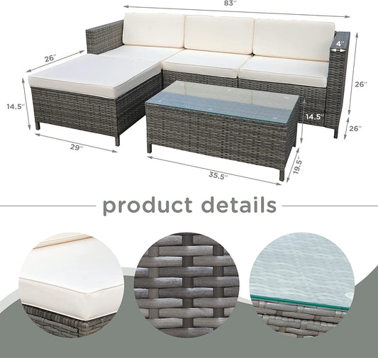 5 Pieces Patio Furniture Sets All Weather Outdoor Sectional Sofa Manual Weaving Wicker Rattan Patio Conversation Set with Washable Cushions and Glass Table