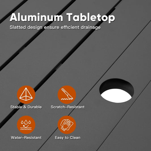 Superjoe Patio Expandable Table Dining Set for 4 to 10, Aluminum Outdoor Dining Table, Rectangular Patio Metal Table with Umbrella Hole for Backyard Porch, Deck & Garden, Easy Assembly, Dark Grey