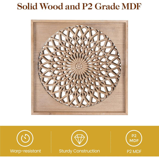 CozyHome Farmhouse Wood Mirror, Square Decorative Mirrors for Wall, Small Hanging Mirror, Wall Mirrors for Living Room, Bedroom, Dining Room, Entryway, Hallway, Wood Color,23.6?¡é???? X 23.6"
