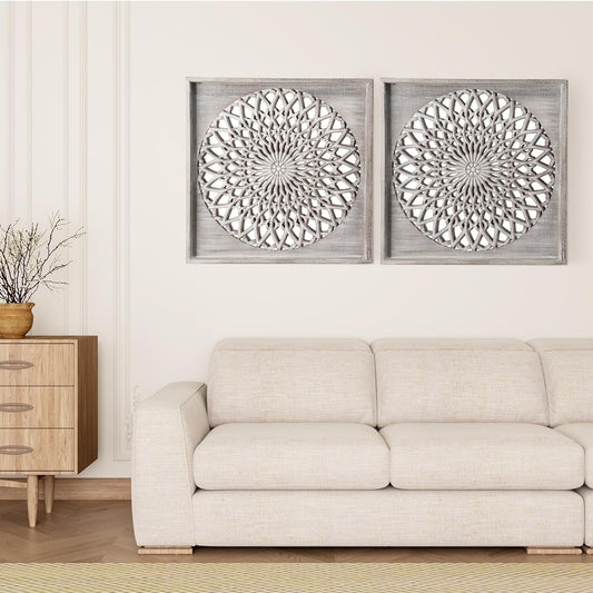 CozyHome Farmhouse Wood Mirror, Square Decorative Mirrors for Wall, Small Hanging Mirror, Wall Mirrors for Living Room, Bedroom, Dining Room, Entryway, Hallway, Grey,23.6a?? X 23.6"