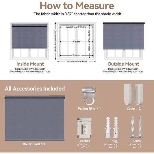 CozyHom 100% Blackout Roller Window Shades, Free-Stop Pull Down Shades for Windows with Thermal Insulated Waterproof Fabric, Roller Blinds for Indoor Windows, Office, Home