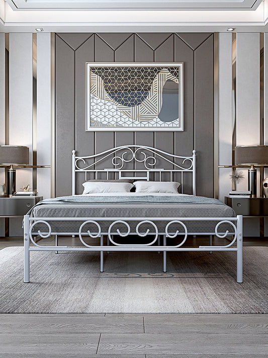 Nordic Retro Curved Floral Iron Bed - Modern Minimalist Style, Double Bed, 1.8m