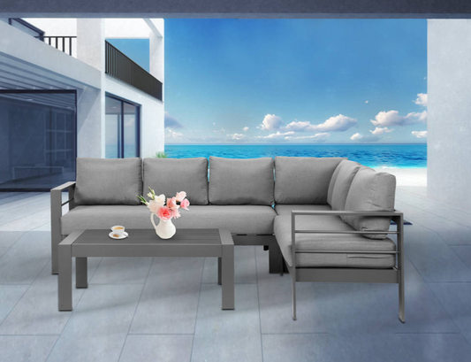 6 Pieces Aluminum Patio Furniture Set, All-Weather Outdoor Couch Conversation Set Modern Metal Sectional Sofa