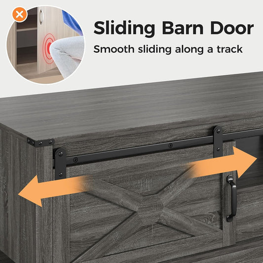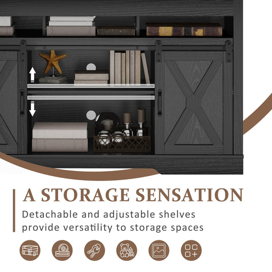 CozyHome Farmhouse TV Stand with Sliding Barn Door for TVs up to 65+ Inch, 34" Tall Entertainment Center, Wood Media Console Storage Cabinet for Bedroom, Living Room, Black