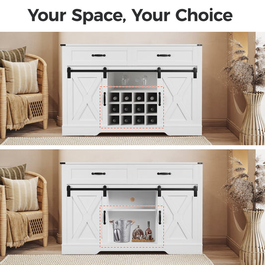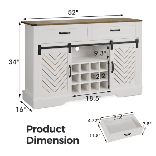 CozyHom Farmhouse Coffee Bar Cabinet, Buffet Sideboard Cabinet With 2 Drawers, Kitchen Storage Cabinet With Sliding Barn Door, Whtie And Brown