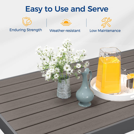 CozyHom Outdoor Dining Table Patio Steel Slat Rectangle Table,Long Outdoor Dining Table, High Table For Party, High Garden Table, Gray.