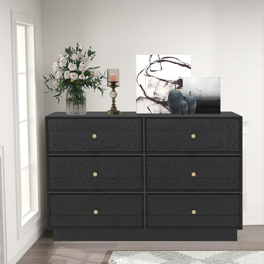 CozyHom 6 Drawers Dresser For Bedroom, Baby Dressers Chest for Nursery, Wood Storage Cabinet for Living Room Hallway Closet, Black