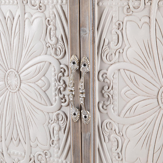 CozyHome Vintage Sideboard Buffet Cabinet with Shelves, Rustic Accent Cabinet with 3 Carved Doors, Wood Storage Cabinet for Kitchen, Dining Room, Living Room, Bedroom, Wash Grey