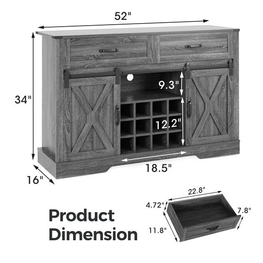 CozyHom Farmhouse Coffee Bar Cabinet, Buffet Sideboard Cabinet With 2 Drawers, Kitchen Storage Cabinet With Sliding Barn Door, Dark Gary