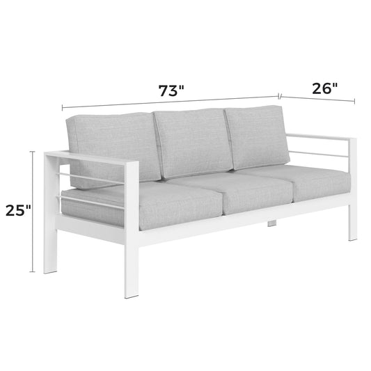 CozyHom 3-Seat Outdoor Patio Aluminum Sofa Furniture Sets Metal Patio Couch With Cushions, Outdoor Accent Chair Patio Long Decorative Sofa/Chairs, White