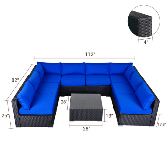 9 Piece Conversation Sofa Set, with Coffee Table, Navy Blue Cushions