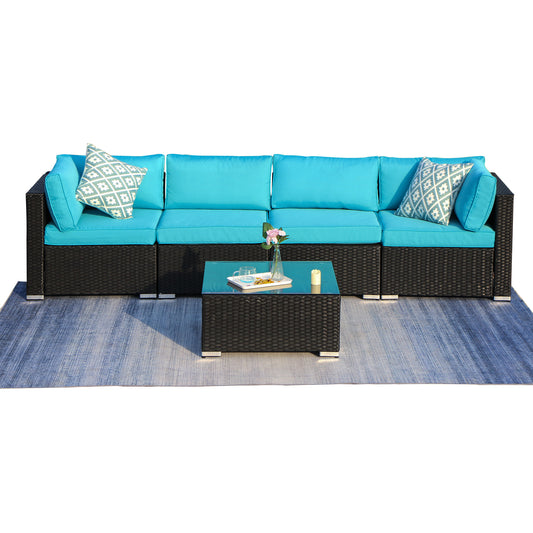 5 Pieces Furniture Sectional Wicker Sofa with Coffee Table