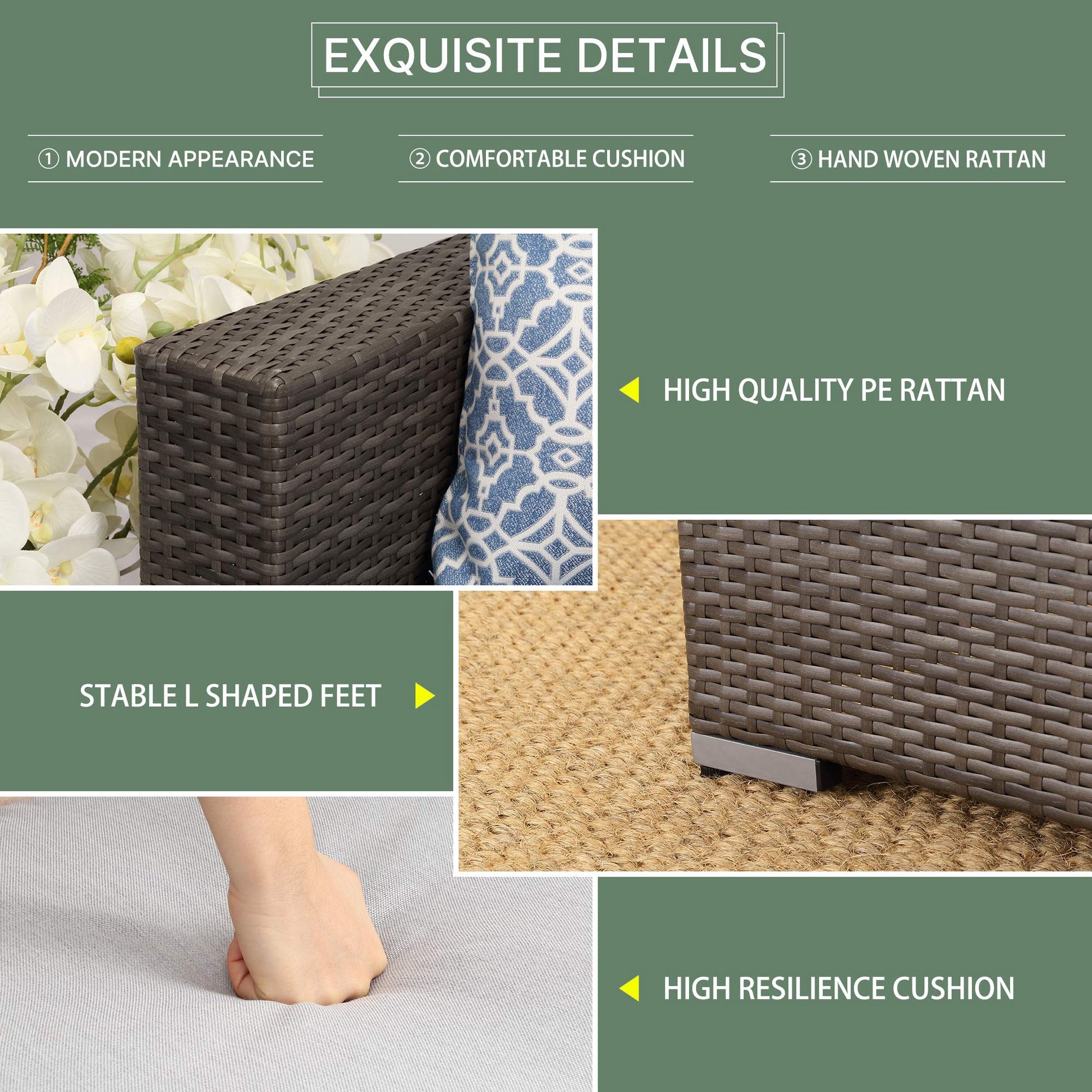 - MODERN?DESIGN- The wicker sectional sofa is light enough to allow you place it in an endless number of configurations. Easily to fit a variety of living space styles and settings