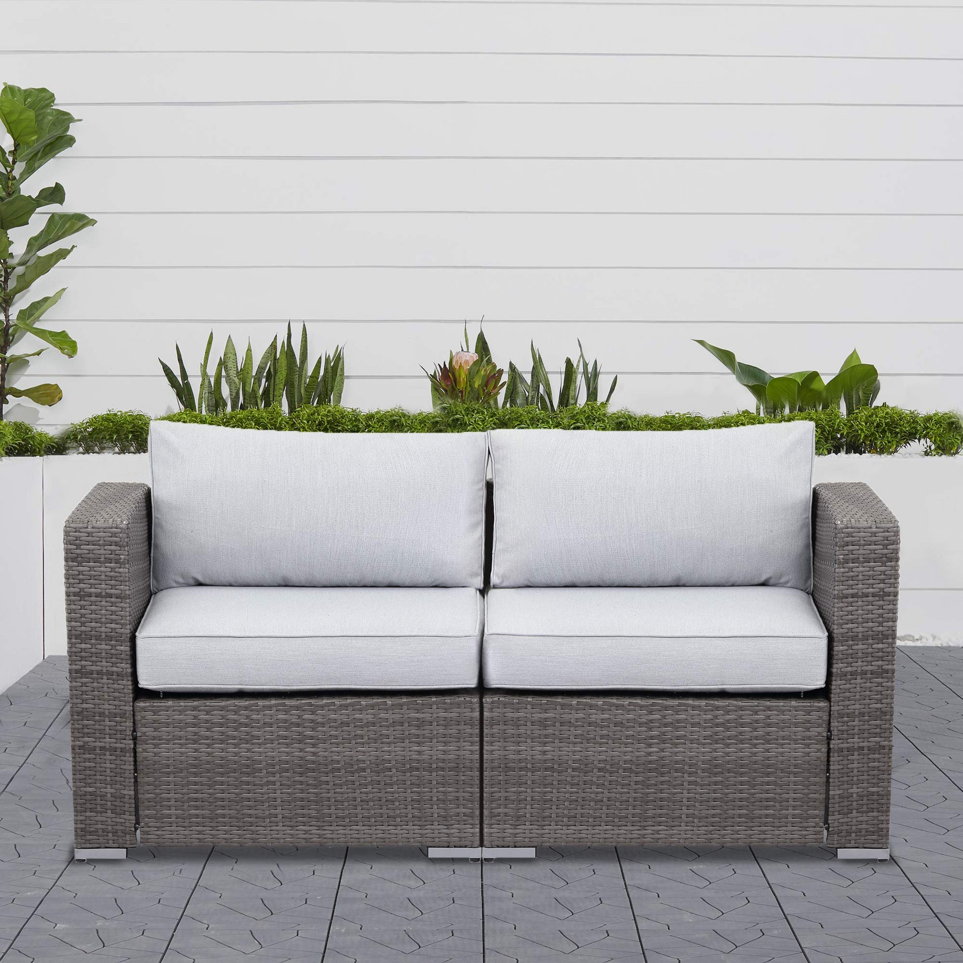 2 Pieces Outdoor Patio Wicker Loveseats