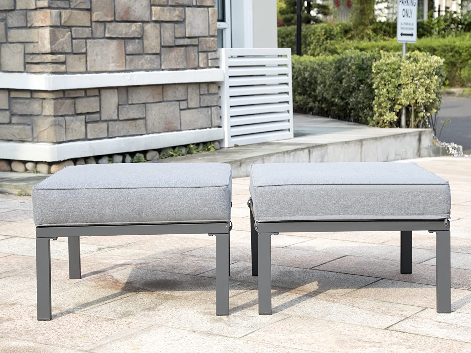 2 Pieces Patio Furniture Outdoor Ottomans, All-Weather Aluminum Outdoor Footstool Footrest