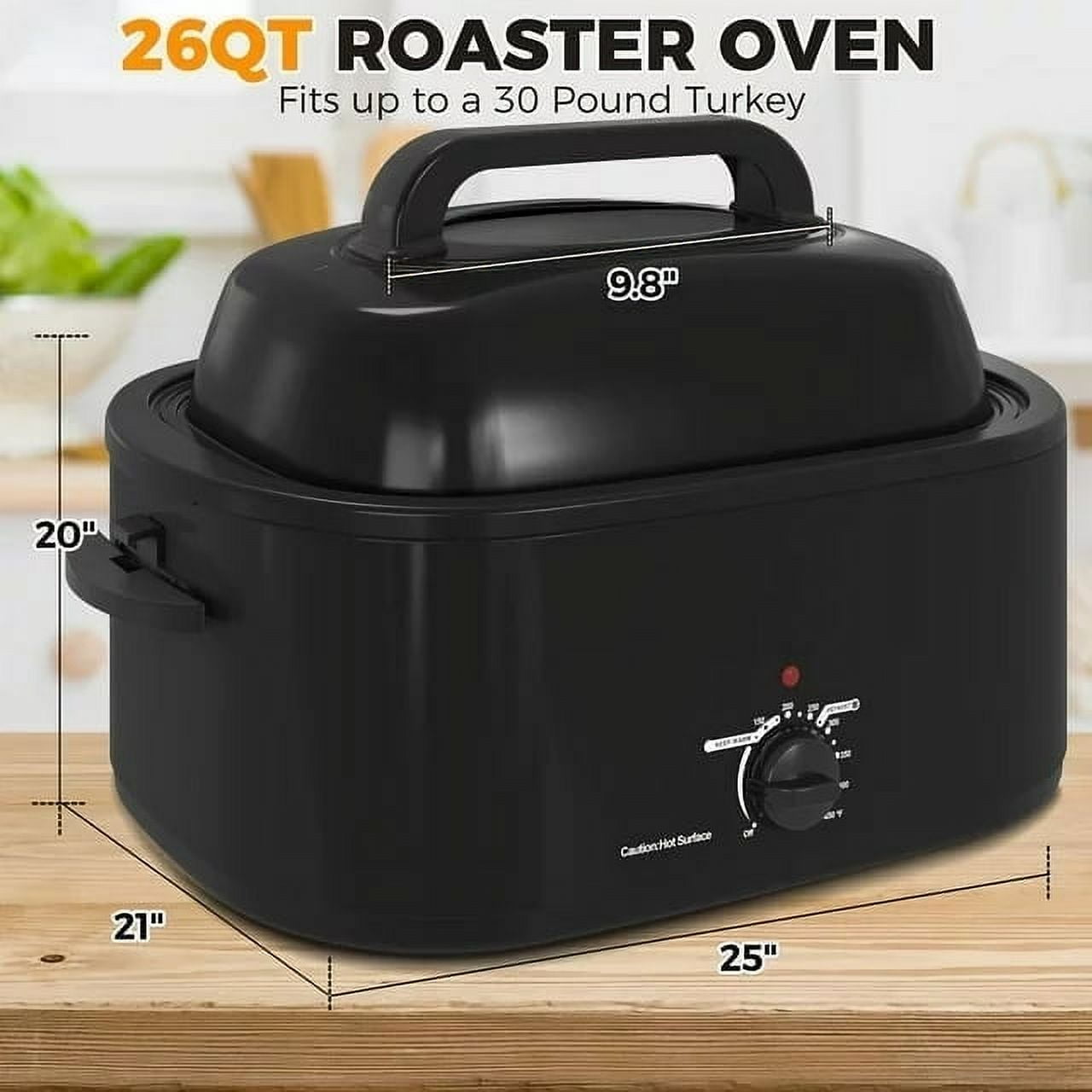 26 Quart Electric Roaster Oven Stainless Steel Turkey Roaster Oven, Self-Basting Lid Removable Insert Pot, Black